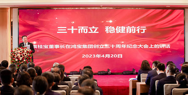 大道求索三十載,繼往開來新時代。2023年4月20日,鴻寶集團創業三十周年慶祝典禮在總部園五樓多功能廳隆重舉行。