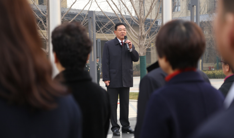 上午八點半,伴隨著莊嚴神圣的升旗儀式,盛大的喬遷典禮正式拉開帷幕,鴻寶集團黨委書記鄧和平主持了慶典儀式,鴻寶集團總裁在升旗儀式結(jié)束后的講話中,回顧了鴻寶集團24年發(fā)展的歷程,表達了對鴻寶集團未來發(fā)展的信心與期待。隨后,董事長發(fā)表了熱情洋溢的講話。在講話中,董事長把新辦公樓入駐比做“上樓趕考”,要求鴻寶人要坐得穩(wěn)、坐得住,以此次新辦公樓搬遷為新的起點,團結(jié)一致,開拓創(chuàng)新,取得更加輝煌的成績。