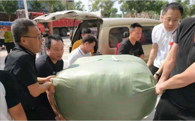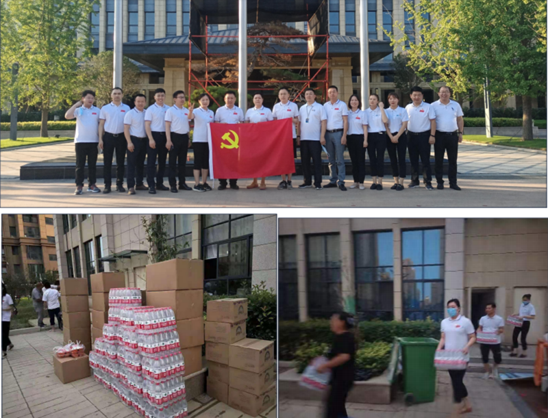 7月24日下午,中牟白沙鎮因泄洪成一片汪洋,尚景佳苑小區如同一片“孤島”,居民被困家中斷水斷糧。集團黨委及時組織,集團公司總裁曉曦總帶隊,緊急籌買礦泉水、盒飯等亟需物資,涉水送至小區居民家中。