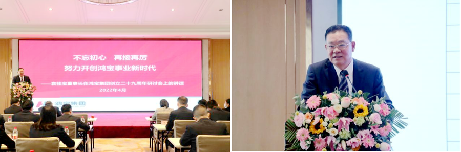 2022年4月19日上午08:00,伴隨著總部園東方紅的鐘聲,為期一天半的鴻寶集團企業發展陷阱研討會暨創立二十九周年紀念大會正式召開。鴻寶集團各位董事、監事、各成員企業總經理及主要管理干部、部分青年代表出席參與了本次研討。
