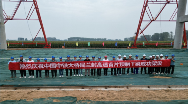 2023年8月20日10時18分,蘭封高速項目黃河大橋首片預制T梁架設成功,標志著項目進入上部結構施工,工程建設取得關鍵性進展。